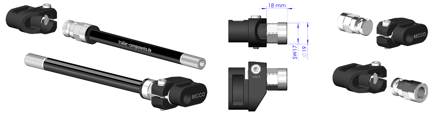 Steckachsen mit Adapter für LEGGERO-Anhänger mit BECCO-System. Durch unser einzigartiges am Markt verfügbares Baukastensystem, können Sie Ihre Steckachse nun passgenau auf den Millimeter bei uns bestellen.