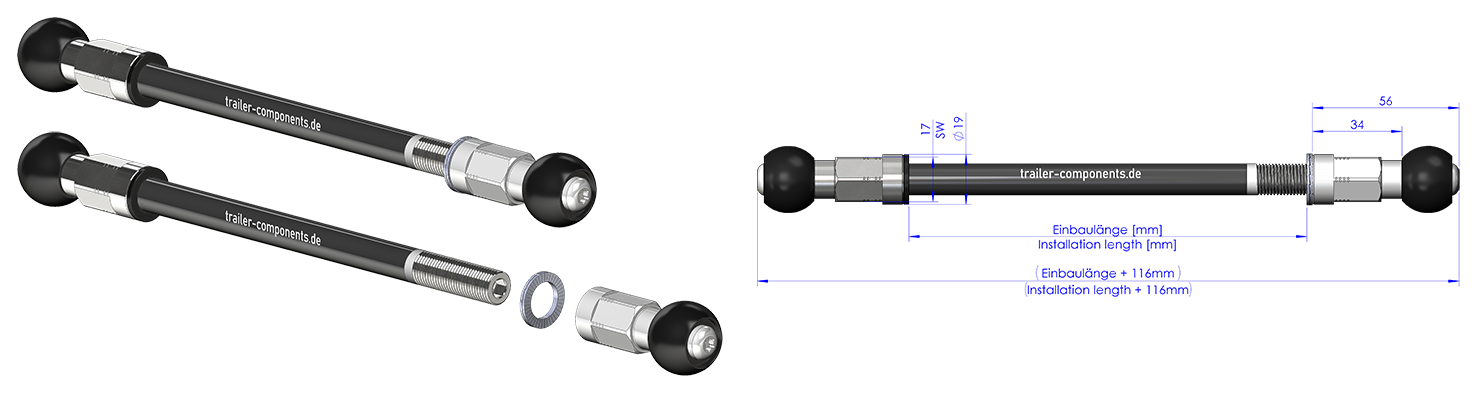 Steckachsen mit Adapter für LEGGERO-Anhänger mit BECCO-System. Durch unser einzigartiges am Markt verfügbares Baukastensystem, können Sie Ihre Steckachse nun passgenau auf den Millimeter bei uns bestellen.
