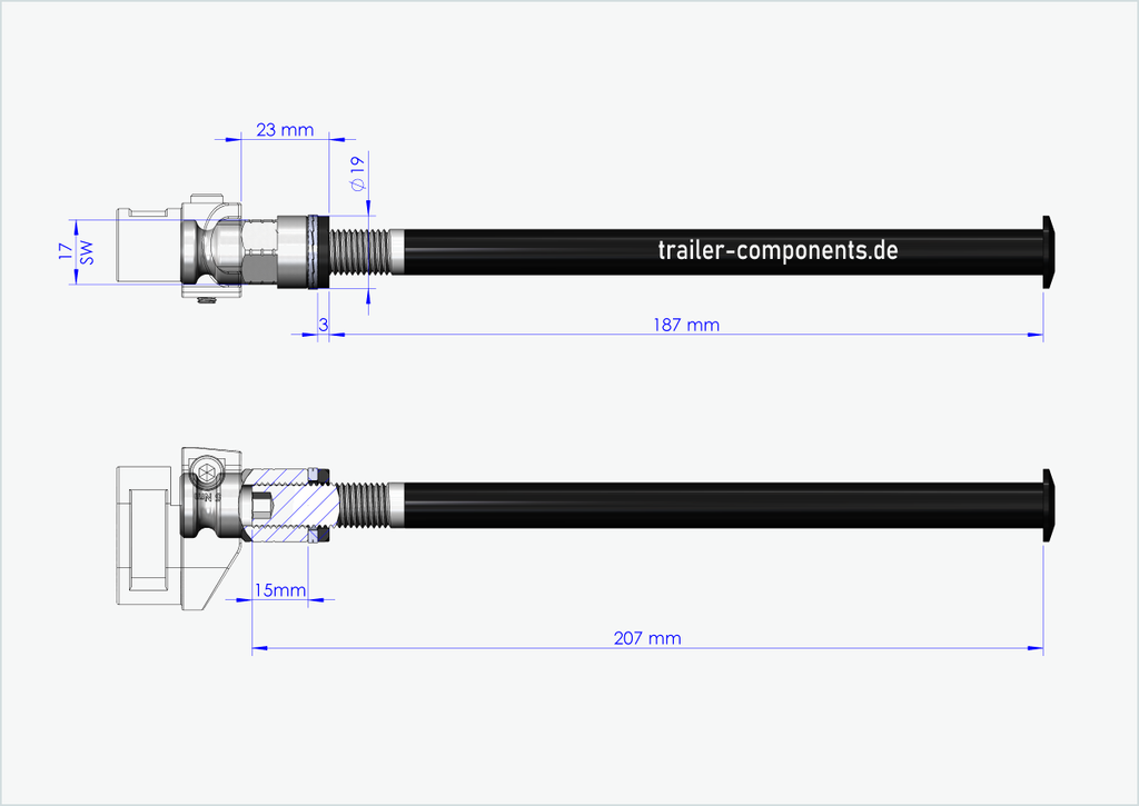- Es liegt in deiner Verantwortung die korrekte Gewindegröße und Einbaulänge [mm] deiner jetzigen Steckachse am Rad festzustellen. Versuche nicht unsere Steckachse mit Adapter in einer anderen Gewindegröße in deine Hinterradnabe zu montieren. Eine falsche Gewindegröße kann dein Fahrrad beschädigen. Solltest Du dir unsicher bei der Ermittlung der richtigen Gewindegröße und Einbaulänge sein, kontaktiere uns per Email oder telefonisch, wir helfen dir gerne dabei.